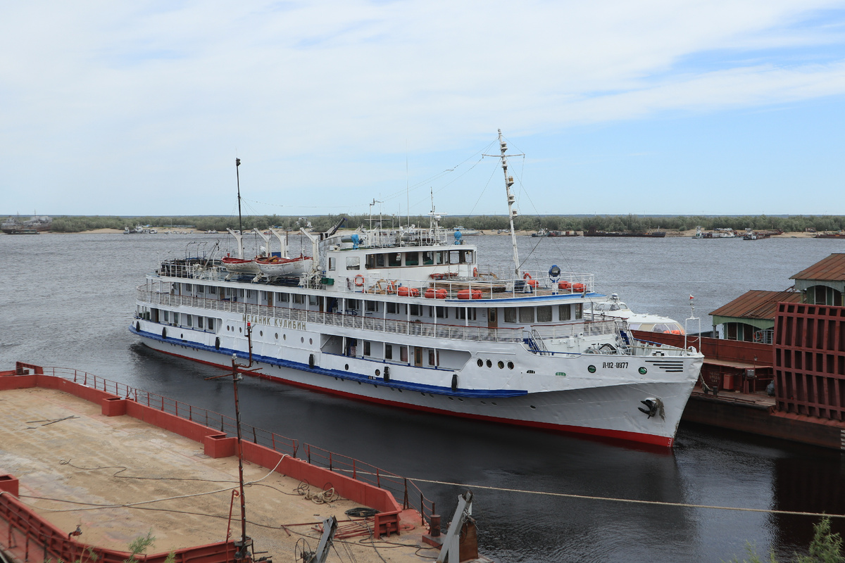 Теплоход "Механик Кулибин" 1955 года выпуска, курсирует по реке Лене по маршруту "Якутск - Тикси". Корабль достаточно старый, как сами видите, в следующем году будет 70 лет, а линия поистине уникальная! Кто знает, сколько ещё такое чудо проходит - может заменят на что-то более новое ...