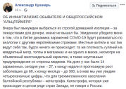 Камрады, предупреждаю - сверхмного букв, но это прекрасно! ОБ ИНФАНТИЛИЗМЕ ОБЫВАТЕЛЯ И ОБЩЕРОССИЙСКОМ "АЛЬЦГЕЙМЕРЕ" Вчера был вынужден выбраться из строгой домашней изоляции – за лекарствами для дочери, иначе не вышел бы. Увиденное убедило меня в том, что в Литве ...