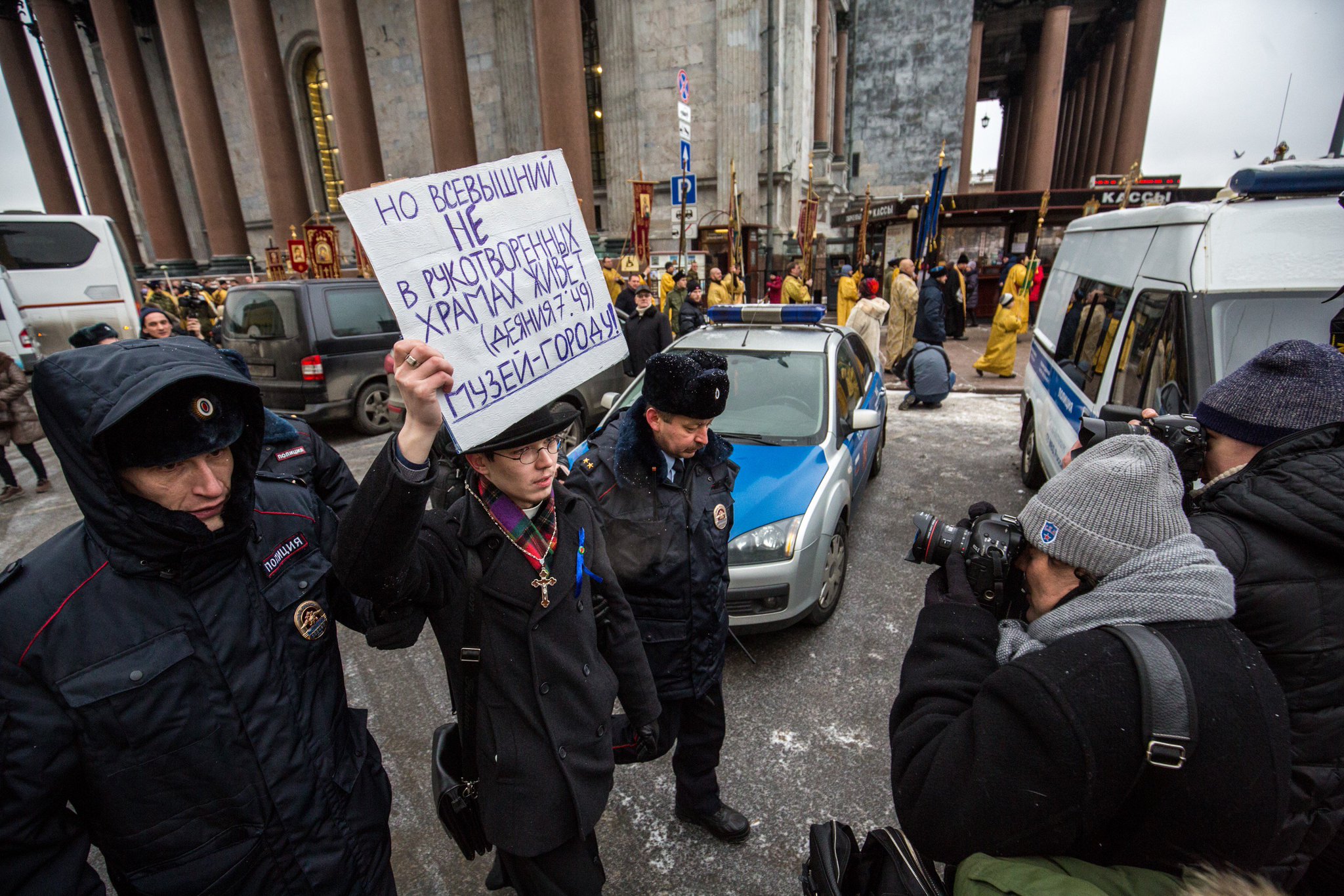 Воскресным утром 12 февраля вокруг Исаакиевского собора прошёл крестный ход с молитвенным пением к преподобному Исаакию Далматскому. Около шести тысяч петербуржцев. Всё чинно, благородно - как и полагается по умолчанию. Перед крестным ходом в Исаакиевском соборе прошла божественная ...