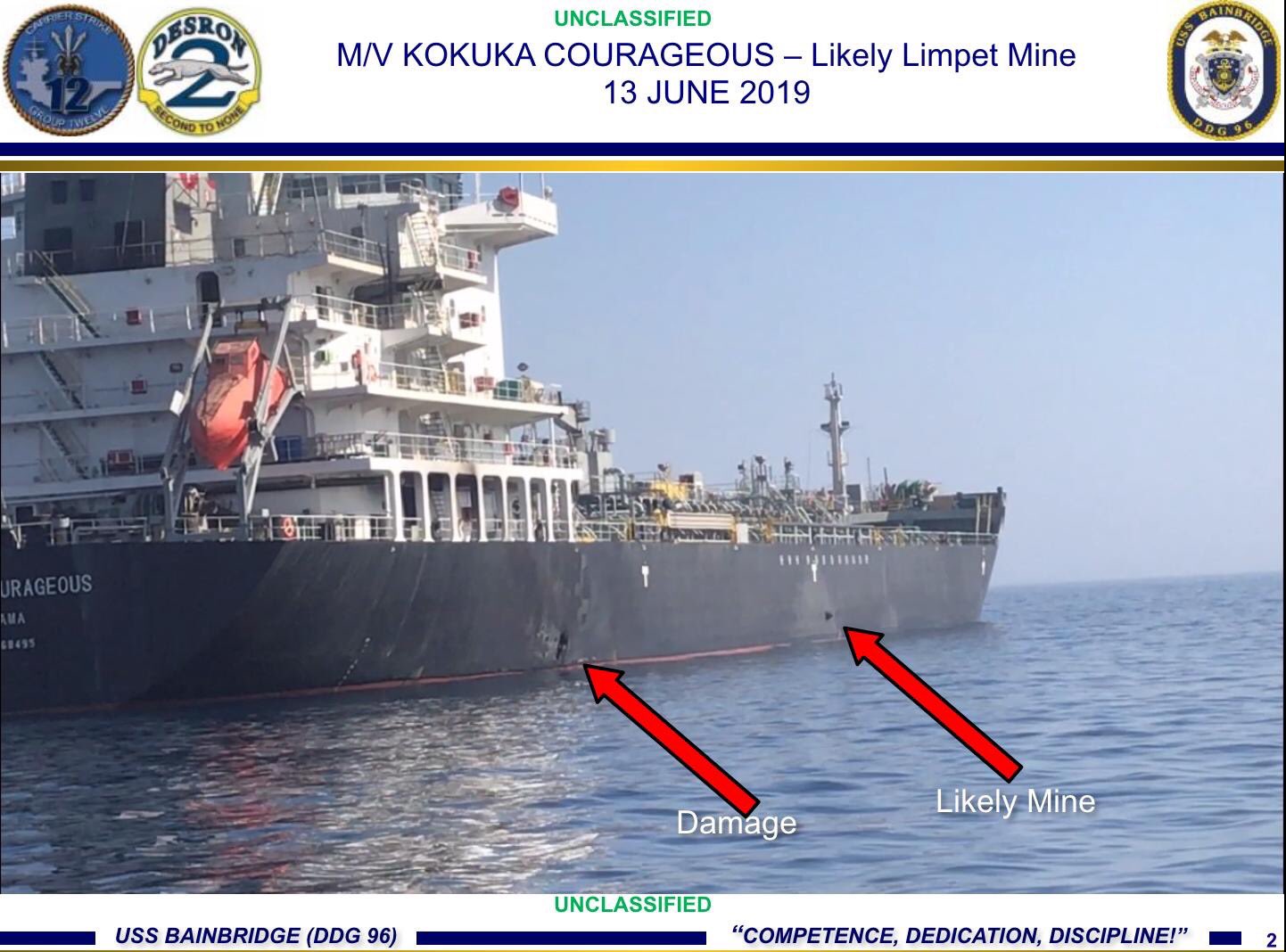 Опубликованы фото повреждений танкера Kokuka Couarageous, получившего вчера повреждения в Оманском заливе. На фото заметны два отверстия (или одно отверствие и некий объект) выше ватерлинии, что сразу отметает версию о "торпедных попаданиях". После этого было опубликовано мутное видео, ...