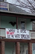 Баннер в США: "Когда я умру не позволяйте мне голосовать за демократов". А все потому что в списках избирателей, якобы заявивших о желании проголосовать по почте, регулярно появляются "мертвые души" — уже ушедшие из жизни люди. И голосуют они исключительно за демократов. Так совпало. ...