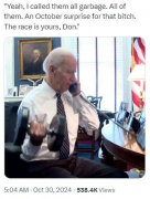 В сети вовсю шутят на тему того, что Байден и Трамп — команда. Подпись над фото: - Ага! Обозвал всех мусором! Всех! Неплохой сюрприз для этой сучки за неделю до выборов. Ты ее сделал, Дон! ...