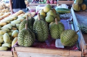 Перед поездкой в Таиланд нам этим дурианом все мозги прожужжали. Мол, это такой фрукт, такой фрукт, который воняет как три свинофермы, зато вкусом затмевает все фрукты вместе взятые. И что дуриан запрещено продавать в магазинчиках в городах, ...